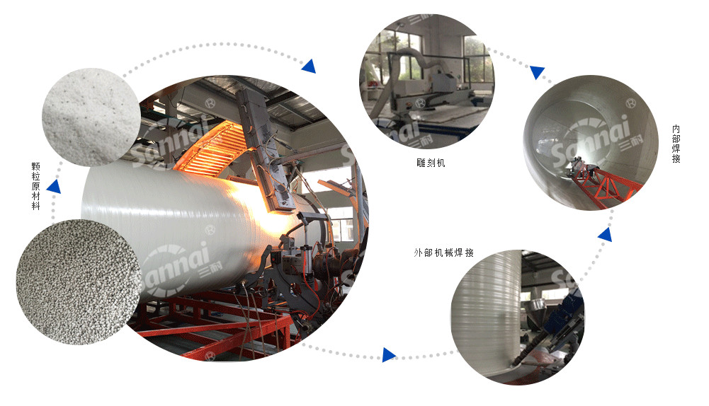 采用擠出纏繞無焊縫機(jī)組,自動(dòng)化焊接技術(shù)及生產(chǎn)裝備